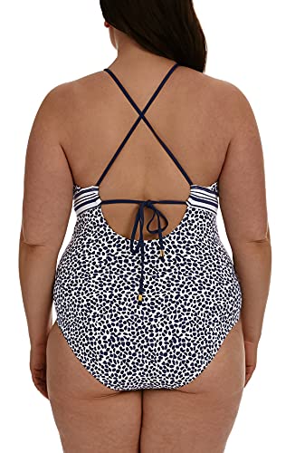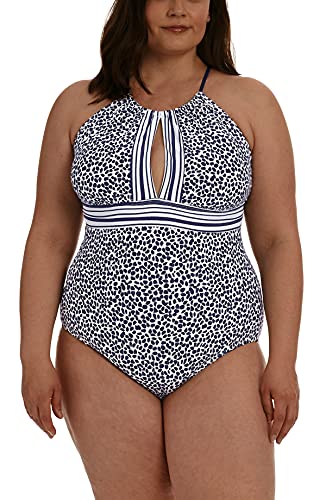 La Blanca Women's High Neck Keyhole Mio One Piece Swimsuit, Indigo, 18W