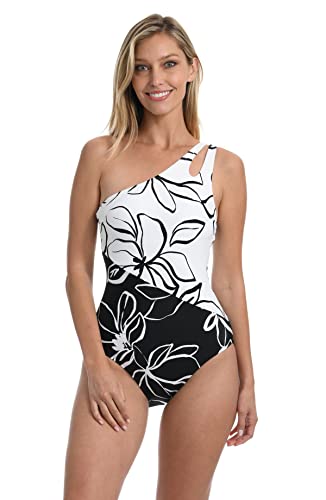 La Blanca Women's Standard Shoulder Cut Out One Piece Swimsuit, Black//Moonlit Silhouette, 12